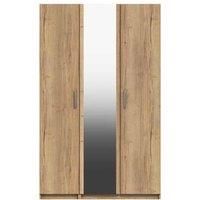 One Call Nimes 3 Door Wardrobe With Mirror Ready Assembled Natural Rustic Oak, Brown