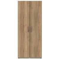 This product is Made in the UK using materials sourced from the UK. This wardrobe features an internal top shelf and a hanging rail. A distinctive modern waterfall profile features on doors with a metal handle that accentuates the profile. Finished in a very nice textured rustic oak finish Features: Natural looking textured grain finish Distinctive modern waterfall profile Metal handle that accentuates the waterfall profile Fully Assembled Made in UK Specifications: Dimensions: H:183.0 x W:76.0 x D:51.0...