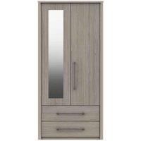 One Call Toulouse 2 Door Combi Wardrobe With Mirror Ready Assembled Fired Earth Grey Oak, Grey