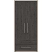 This product is Made in the UK using materials sourced from the UK. This wardrobe features two drawers for storage and an internal hanging rail. The drawers are linen lined and feature a heavy duty drawer base. Featuring a stylish, angled pillar on each front corner this robe is finished in a painted look Fired Earth carcass and natural looking textured grain doors and drawers. Features: Painted look Fired Earth colour carcass with textured grain fronts Stylish angled pillars Metal handle Heavy duty dra...