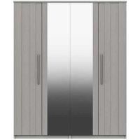 One Call Furniture Metz 4 Door Wardrobe With Two Mirrors Ready Assembled Light Grey, Grey