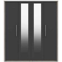 This product is Made in the UK using materials sourced from the UK. Featuring high quality stunning high gloss doors and a tactile real wood look on the carcass Features: High quality modern gloss finish on doors This wardrobe features an internal top shelf and a hanging rail in both sections Stylish angled pillars Brushed nickel handle Fully assembled Made in UK Specifications: Dimensions: H:185.0 x W:154.0 x D:52.0 cm Colour: Grey Guarantee:1 year Material: Mdf Model Number: ARUNGOGRR4DRM Please note:...