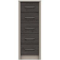 Smyth Ready Assembled 5 Drawer Tall Boy in Light Grey/Taupe or Dark Grey/Taupe - Made in the UK Delivered ready assembled for the ultimate ease and convenience, this ultra modern tallboy from our UK made Smyth collection will not only be taken to your room of choice, but our delivery team will even carry out any minor assembly (if required) and even remove the packaging when they're finished! With a taupe painted look to the frame, it boasts smartly angled front edges and features contrasting grained-e...
