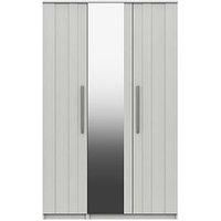 One Call Taylor Part Assembled 3 Door Mirrored Wardrobe in Light Grey, Graphite and White - Made in the UK Please note: for ease of delivery this wardrobe will arrive in ready assembled sections that can be easily joined together in the home. One Call's dedicated delivery team will not only take it to your room of choice, but will also carry out any minor assembly (if required) and even remove the packaging when they're finished. Crafted right here in the UK, this large wardrobe provides loads of spac...
