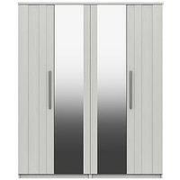 One Call Taylor Part Assembled 4 Door Mirrored Wardrobe in Light Grey, Graphite and White - Made in the UK Please note: for ease of delivery this wardrobe will arrive in ready assembled sections that can be easily joined together in the home. One Call's dedicated delivery team will not only take it to your room of choice, but will also carry out any minor assembly (if required) and even remove the packaging when they're finished. Crafted right here in the UK, this large wardrobe provides loads of spac...
