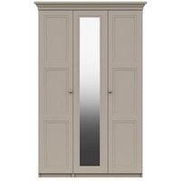 Reid Part Assembled 3 Door Mirrored Wardrobe in Taupe or White - Made in the UK Please note: for ease of delivery this wardrobe will arrive in ready assembled sections that can be easily joined together in the home. Our new Reid range is a stylish collection of bedroom furniture that comes in a soft choice of taupe or white painted wood-effect finishes. This wardrobe features a mirrored centre door that will bathe your sleep space in extra light and depth, while the outer doors are fashioned with a styl...