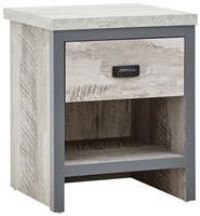 If youre looking for a contemporary addition to your living space, the industrial-inspired Boston lamp table is the savvy choice. Designed to bring a splash of urban chic into your home, it boasts chunky construction and a distressed grey finish. The simple, double-sided design means it can be placed anywhere in the room whilst the deep drawer with matching wood-effect interior offers plenty of convenient storage space.Do not use solvent based cleaners or detergents as they can bleach or damage the prod... - Manufacturers part number: 30705676