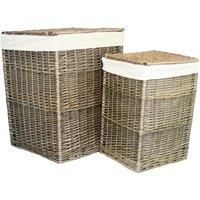 Full buff antique wash finish willow oatmeal lining integral handles Ideal for general storage or laundry High quality Laundry and Storage baskets. Attractive looking . High Quality, Well made Basketware. Natural product so dimensions can vary slightly. Manufactured from sustainable materials. Colours and finish could vary. Size Small Depth 46 x Height 61 x Width 46cm Weight 3.5kg Large Depth 50 x Height 34 x Width 35cm Weight 5kg Material Wicker - Manufacturers part number: H022