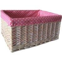 Full white wash willow with 100% cotton removable lining Ideal for around the house storage, Sizes Small 32 x 20 x 17cm Medium 37 x 24 x 19cm Large 43 x 30 x 21cm Extra Large 47 x 34 x 23cm All our Storage Baskets are made from sustainable materials High quality Laundry and Storage baskets | Red Hamper Wicker Pink Spotty Lined Storage Basket | Size: XL - Manufacturers part number: ST002P/4