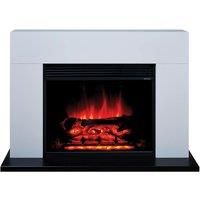 Lindale Electric Suite Lindale electric suite finished in white complete with black back panel. Contemporary wide screen electric fire with up to 2kw heat output, thermostatic control, remote control & flat wall fixing. Ecodesign compliant. Features: Room temperature control up to 2kW heat output 7 day timer Draft Detection Daily and weekly programmable LED Flame effect Low energy consumption Flat wall fixing Specifications: Dimensions: H:74.6 x W:106.6 x D:29.5 cm Colour: White Guarantee: 1 year Batter...