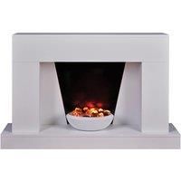 Kimberley Electric Suite Kimberley electric suite finished in textured white with a contemporary bowl electric fire with 1kw - 2kw heat output, thermostatic control & flat wall fixing. Features: 2 Kw heat output Contemporary bowl LED Flame effect Low energy consumption Flat wall fixing Specifications: Dimensions: H:82.8 x W:130.0 x D:30.0 cm Colour: White Guarantee: 1 year Model Number: KIM1024