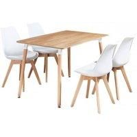 The highly recommended Scandinavian style Lorenzo dinette set includes a modern dining table and dining chairs set of 4. The padded kitchen set will match any room due to its classic design and will give a sophisticated touch to your furniture. The sturdy wooden table and kitchen chairs with padded faux leather seats offer a comfortable sitting experience. The legs feet are covered with end caps that protect your floor from scratching, in the meantime make this dinette set anti-slip, anti-noise and enhance its stability. Perfect for kitchen storage, dining rooms, living rooms, and many more. Hence, offers a practical and modern seating solution to your home and living space. | Life Interiors 5 Pieces Dining Set - a Halo Dining Table & Set of 4 Lorenzo Tulip chairs with Padded Seat in White - Manufacturers part number: Life Interiors_5060547014194
