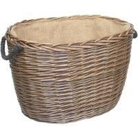 Full antique wash willow log basket with a hessian lining and rope handles.. Attractive looking . High Quality, Well made Basketware. Natural product so dimensions can vary slightly. Manufactured from sustainable materials. Colours and finish could vary. Size Depth 39 x Height 47 x Width 60cm Weight 5kg Material Wicker