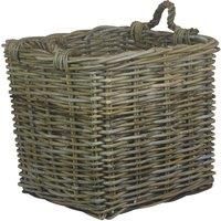 Well Made from Kubu grey rattan with rope handles. Attractive looking . High Quality, Well made Rattan. Natural product so dimensions can vary slightly. Manufactured from sustainable materials. Colours and finish could vary. Size Depth 40 x Height 43 x Width 43cm Weight 2.5kg Material Rattan | Red Hamper Rattan Square Grey Rattan Log Basket in Brown