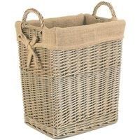 Full antique wash willow with a removable hessian lining.. Attractive looking . High Quality, Well made Basketware. Natural product so dimensions can vary slightly. Manufactured from sustainable materials. Colours and finish could vary. Size Depth 34 x Height 40 x Width 26cm Weight 1kg Material Wicker | Red Hamper Wicker Small Rectangular Hessian Lined Log Basket in Brown