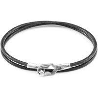 ANCHOR & CREW Men's Tenby Silver & Round Leather Bracelet in Grey | Size: 21 cm