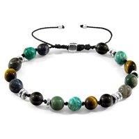 The Agaya Silver and Stone Beaded Macrame Bracelet was both designed and skilfully handcrafted completely in Great Britain. Combining British craft manufacturing with a discerning modern-minimalist style, this ANCHOR & CREW bracelet features: 8mm diameter genuine stone beads with strong cotton thread and separating knots (GB) Adjustable knotted macrame drawstring clasp with a solid .925 sterling silver logo cube, end beads and rondelles (GB) This bracelet is one size fits all, with the drawstring able t...