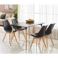 The highly recommended Scandinavian style Lorenzo dinette set includes a modern dining table and dining chairs set of 4. The padded kitchen set will match any room due to its classic design and will give a sophisticated touch to your furniture. The sturdy wooden table and kitchen chairs with padded faux leather seats offer a comfortable sitting experience. The legs feet are covered with end caps that protect your floor from scratching, in the meantime make this dinette set anti-slip, anti-noise and enhance its stability. Perfect for kitchen storage, dining rooms, living rooms, and many more. Hence, offers a practical and modern seating solution to your home and living space. | Life Interiors 5 Pieces Dining Set - a Halo Dining Table & Set of 4 Lorenzo Tulip chairs with Padded Seat in Black