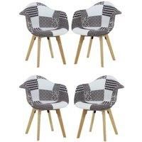 Rejuvenate your home with modern seating that will be a lovely addition as a patchwork chair in your living room, den, library, or sitting room. This chair will add an attractive statement to your kitchen or dining room. Aesthetically pleasing to the eye and attention-seeking. The union between solid workmanship and high quality. Upholstered in a simple black and white funky design. Stylish, functional, and ultra-trendy. Our Patchwork Tulip Tub Chair is a bestseller. The molded polypropylene shell is covered with fabric - providing that extra intelligent support where it's needed most. Supported with solid wooden legs. Sit in comfort around the dining table or cuddle up with your favorite book. The durable and iconic design is eye-catching and will surely make a statement in your home. | Life Interiors Set of 4 Patchwork Fabric Dining Chairs with Wooden Legs, Modern Accent Chair - Manufacturers part number: Life Interiors_5060632408624