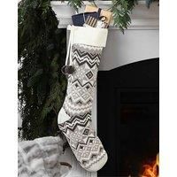 Inspired by classic Christmas jumpers, this scandi inspired grey and white knitted stocking with pom pom detailing allows for plenty of room for stocking fillers to be displayed on a mantelpiece, door handle or shelf. Mix and match with different designs. Complete with a loop a to hang above the fireplace or at the end of your bed perhaps. | Dibor Set of 4 Grey & White Fair Isle Zig Zag Xmas Gift Christmas Stocking | Size: 4 Pack