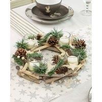 A beautiful Christmas decoration, this Christmas wreath shaped tealight holder fills your home with Christmas cheer. Beautifully designed with shooting stars, clusters of berries and festive floristry hand placed on a wreath shaped wooden base, this candle holder is perfect for the holiday season. | Dibor Nordic Wreath Tealight Xmas Table Decoration Centrepiece Christmas Dcor Candle Holders 30cm in Natural