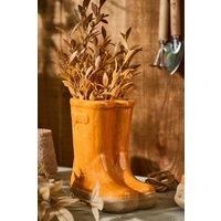 Designed to look just like a pair of wellies, this planter is made from durable stoneware with a high gloss treacle glaze finish in sunset orange with relief buckle detailing. Ideal to hold a variety of small shrubs and colourful flowers, the wellington boot plant pot is great for children of all ages to get involved in the joy of gardening with parents and grandparents or simply a welcome addition to any garden, patio, doorstep or windowsill perhaps. | Dibor Small Orange Double Wellington Boots Ceramic...