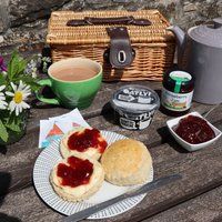 Enjoy a classic British tradition with a modern twist through our Vegan Cream Tea for Two Hamper. This delightful hamper offers everything you need for an indulgent vegan cream tea experience, featuring two fluffy vegan scones, rich Oatly creamy oat fraiche, and luscious strawberry preserve. Accompanied by premium Devon tea, this hamper ensures a perfect afternoon treat, whether you're at home or gifting a loved one. Each item is carefully crafted to maintain the timeless charm of a traditional cream tea while being fully plant-based, making it an inclusive and delicious choice for everyone. This hamper contains fresh ingredients that are best stored in the fridge once delivered. Contents: 2 Vegan scones, Fresh hand-made scones - Feshly baked scones made to a vegan recipe. , Boddingtons Berries Strawberry Conserve - 227g - Made using the traditional cooking method and contains no artificial preservatives, colourings, flavourings , Oatly Creamy Oat Fraiche 200ml - Made from - Manufacturers part number: Devon Hampers_1070-8