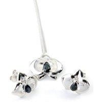 Ojewellery designed orchid pendant set with a 0.5ct 6 x 4 natural inky blue Australian sapphire matching stud earrings each set with a 0.3ct natural pear stone The phalaenopsis aphrodite orchid has popularised in recent years as a long living elegant house plant - mine certainly bring a little extra joy and natural life into my world. The design of these encapsulates the elegance through a graceful outline of the orchid set with a central set stone representing the inner petals and orchid colour. The st...