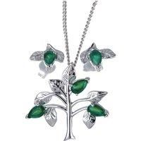 Elegant Tree of Life trilogy stone pendant set with three natural Indian vivid green onyx and matching onyx stud earrings. The five green onyx are 3mm x 5mm. An Ojewellery design the tree symbolising harmony, balance and a connection to our roots. The trilogy of gemstones representing the passage of time. Each stone represents one element our past, our present and our future. Onyx are associated with strength, intelligence and discipline. They are the birthstone for May. This elegant set is suitable to ...