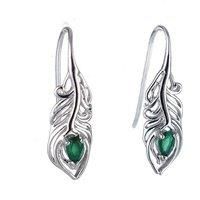 Sterling Silver onyx Peacock Feather design dangle Earrings with an eye set with a natural Indian Green faceted Onyx. Onyx are associated with strength, intelligence and discipline. They are the birthstone for May. Finished with a commercial grade rhodium plate to give a high quality shine finish. Supplied in an Ojewellery presentation box, within a ribbon handled gift bag, complete with product information authenticity card with space for a gift message and a jewellery cleaning cloth to keep your jewel...