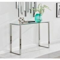 Simplistic, yet elegant, the Miami console table would be a brilliant addition to any home. The table top is made from 8mm thick clear tempered glass, with a generous 120x40cm surface allowing plenty of room. Finished in chrome the two metal table legs provide a sturdy support for the glass top as well as providing a modern and minimalist look. The minimalist design also allows the table to create a light and open look in your living room or hallway, seamlessly fitting into any space. The Miami range al... - Manufacturers part number: FurnitureboxUK_5060661181123