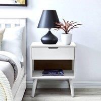 Influenced by modern Scandinavian design, the Alma Bedside Table works seamlessly in contemporary homes. Minimalist design combined with practical features, ideal for every living space. This unit is the perfect accompaniment to a contemporary bedroom suite, with clean lines and sleek design features. Features: Self assembly Painted finish - white or grey available Contemporary design with slim, tapered legs Single drawer and alcove storage Matching chest of drawers available Specifications: Dimensions:... - Manufacturers part number: FurnitureboxUK_5060661182137