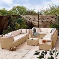 Our Orlando 10 seat PE resin rattan extra large outdoor sofa is perfect for gardens of all shapes. Thanks to its modular design, this rattan sofa set can be arranged in lots of different shapes to fit your garden. The textured PE resin rattan weave gives a natural look and is complimented by the fabric cushions. The 2x matching square coffee tables with tempered glass top provide plenty of space for drinks and nibbles. The rattan frame can be left outside all year round and is easy maintenance, needing just a wipe down with a soft cloth to remove any built up dirt. The inner frame is made from metal which is strong as well as lightweight, durable and weather-resistant. The thick, foam filled seat and back cushions are 10cm thick providing comfort and support for you to sit back, relax and enjoy the sunshine. The cushions are splash resistant so if you spill a drink on the cushion you can firmly pat the underside of the cushion to encourage the droplets to roll off and avoid them soakin... - Manufacturers part number: FurnitureboxUK_5060661188603