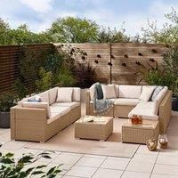 Our Orlando 8 seat PE resin rattan extra large outdoor sofa is perfect for gardens of all shapes. Thanks to its modular design, this rattan sofa set can be arranged in lots of different shapes to fit your garden. The textured PE resin rattan weave gives a natural look and is complimented by the fabric cushions. The 2x matching square coffee tables with tempered glass top provide plenty of space for drinks and nibbles. The rattan frame can be left outside all year round and is easy maintenance, needing just a wipe down with a soft cloth to remove any built up dirt. The inner frame is made from metal which is strong as well as lightweight, durable and weather-resistant. The thick, foam filled seat and back cushions are 10cm thick providing comfort and support for you to sit back, relax and enjoy the sunshine. The cushions are splash resistant so if you spill a drink on the cushion you can firmly pat the underside of the cushion to encourage the droplets to roll off and avoid them soaking... - Manufacturers part number: FurnitureboxUK_5060661188641