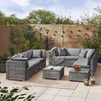 Our Orlando 8 seat PE resin rattan extra large outdoor sofa is perfect for gardens of all shapes. Thanks to its modular design, this rattan sofa set can be arranged in lots of different shapes to fit your garden. The textured PE resin rattan weave gives a natural look and is complimented by the fabric cushions. The 2x matching square coffee tables with tempered glass top provide plenty of space for drinks and nibbles. The rattan frame can be left outside all year round and is easy maintenance, needing just a wipe down with a soft cloth to remove any built up dirt. The inner frame is made from metal which is strong as well as lightweight, durable and weather-resistant. The thick, foam filled seat and back cushions are 10cm thick providing comfort and support for you to sit back, relax and enjoy the sunshine. The cushions are splash resistant so if you spill a drink on the cushion you can firmly pat the underside of the cushion to encourage the droplets to roll off and avoid them soaking... - Manufacturers part number: FurnitureboxUK_5060661188665