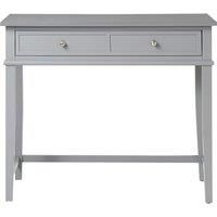 Franklin Writing Desk in Grey This elegant writing desk also works as a console table you can place in your hall. Made from a sturdy MDF and solid wood legs that have been splashed in a painted grey finish, its top provides room for your laptop and other work or study essentials. Two drawers offer essential storage and are fitted with sleek metal knob handles, while decorative moulding and a tapered finish to the legs give the furniture an added sense of elegance. Please remember to measure your availab... - Manufacturers part number: Dorel_