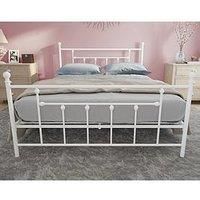 Metal beds are all the rage now and you can see why. The Manila metal bed not only commands attention, it also offers the perfect balance of modern sophistication and Victorian detailing, combining straight lines with rounded final touches for a look you'll love for years to come.Features:. Metal slats offer support and durability.. Metal slat base allows air to pass freely beneath your bed, keeping your mattress fresher longer.. Accommodates any standard UK Double or King mattress (sold separately).. Ships in one box and assembles quickly.Dimensions:. Height: 111.8cm.. Width: 210.8cm. . Depth: 158.8cm.
