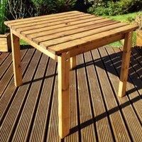 This Charles Taylor 4 Seater Square Table is perfect for outdoor dining in a smaller outdoor space.Featuring a square design to seat four, this wooden outdoor table is made from FSC Certified Scandinavian Redwood which has been treated with preservative for durability and features rustproof galvanised zinc bolting for further longevity.Made in Britain and delivered fully assembled, this square Charles Taylor table is ready for you to use straight away.. 4 seater. Square design. Made from Scandinavian Redwood. Hand finished. Made in Britain. Preservative/stain applied. FSC certified timber. Rustproof galvanised zinc bolting. Delivered fully assembled. Approximate dimensions each (mm) H800 W1000 D1000. Weight each 18KG*Please note that this product is delivered direct from our supplier and may take a little longer to arrive - Manufacturers part number: Charles Taylor_