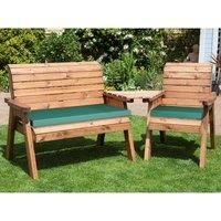 A roomy seating solution for patios, balconies or gardens, this Charles Taylor Three Seat Angled Companion Set features a two-seater bench and armchair with a handy table connecting them together.Made from FSC Certified Scandinavian Redwood, this companion set comes with comfortable seat cushions and has had preservative applied and comes with rustproof galvanised bolting for additional peace of mind. A fitted cover is also supplied to protect the set during all weathers.Made in Britain and delivered fully assembled, this Charles Taylor set is ready for you to enjoy straight away, and the components can even be used separately for variable seating options.. 1 x Two seater bench with cushion. 1 x Armchair with cushion. Detachable angled corner tray. Components can be used separately. 1x Fitted Cover. Made from Scandinavian Redwood. Hand finished. Made in Britain. Preservative/stain applied. FSC certified timber. Rustproof galvanised zinc bolting. Delivered fully assembled. Approximate d... - Manufacturers part number: Charles Taylor_
