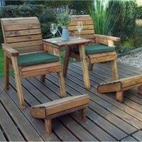 This Charles Taylor Deluxe Straight Lounger Set with Cushions is ideal for relaxing in the garden during the warmer months.Constructed from FSC Certified Scandinavian Redwood, this companion set features a combination of 2 armchairs with detachable centre tray and two angled footstools for extra comfort. The set has been treated with preservative and comes with rustproof galvanised bolting for additional peace of mind.With two comfy seat cushions, this companion set is sure to provide a comfortable spot in any outdoor space. To maintain freshness, it is advised to store garden cushions indoors when not in use.Made in Britain and delivered fully assembled, this Charles Taylor Set is ready for you to enjoy straight away, and the components can even be used separately for customisable seating.. 2 x Armchairs . 1 x Detachable straight tray. 2 x Footstools. 2 x Seat cushions included. Components can be used separately. Made from Scandinavian Redwood. Hand finished. Made in Britain. Preserva... - Manufacturers part number: Charles Taylor_