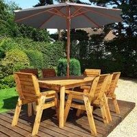 This Charles Taylor six seater rectangular table set is a great addition to your outdoor space for a touch of style and somewhere to relax. This outdoor dining set is constructed from tough and durable FSC approved timber so it's built to last, giving you years of outdoor enjoyment. The set comes complete with seat cushions, a cushion storage bag, a matching 2.7m parasol and a parasol base. Perfect for decking out your garden with everything you need. The grey cushions and matching parasol give you a c... - Manufacturers part number: Charles Taylor_