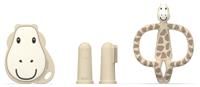 Matchstick Monkey, Antimicrobial Teething Starter Set - 1 Flat Face Teether, 1 Animal Teether, 2 Silicone Finger Toothbrushes, 3 Months Old+, Gigi Giraffe