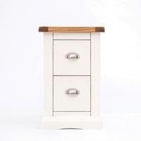 Our Cosenza collection has a simple but pleasing design and is produced by our skilled craftsmen to the highest standards using responsibly sourced wood and veneers. All tops are made using a combination of hardwood and ash veneer and are carefully hand waxed giving it a great look. The body is finished with a high quality eco friendly water base paint on an off-white colour. This petite bedside is perfect for any bedroom where space is at a premium. The two drawers have plenty of space to take your nig...