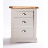 Our Loreo collection has a simple but pleasing design and is produced by our skilled craftsmen to the highest standards using responsibly sourced wood and veneers. All tops are made using a combination of solid pine wood and veneers and are carefully hand waxed giving it a great look. The body is finished with a high quality eco friendly water base paint on an light grey colour. A combination of drawer sizes means this 3 drawer bedside allows for flexible storage. The top drawer is shallow and perfect t...