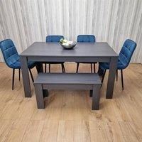 Get offerA stunning wooden dark grey arrow design Dining Table set included set of 4 tufted velvet blue rocco chairs with slightly curved back design, and 1 Bench.The dining table colour is dark grey color with a hint of charcoal. The dining chairs colours are blue with slightly curved back design for fitting with body shape.The dinner table is crafted with high-quality MDF, and a melamine laminated finish to ensure a durable, long-lasting tabletop. The dining chairs are made of premium velvet with metal chair l... - Manufacturers part numbers: Arrow charcoal 140 + 4 blue rocco + 1 b|KOSY KOALA_5060711587141