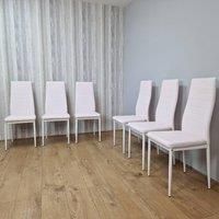 6 White faux leather chairs with a touch of pink For Kitchen, Dining. Comfy chairs soft pad with the finest faux leather with detailed stitch craft. The chairs seats and backrest are extra padded cushioned for extra comfort when you sit on them. The chairs come with protection caps to protect the floor. The chairs rest on sturdy metal legs with great strength and durability with adjustable foot protection, ensuring stability on various floor surfaces. This practical feature ensures that your dining experience is comfortable and wobble-free, the chairs seats and back rest are extra padded cushioned for extra comfort when you sit on. Chairs size: 40cm x 39cm x 96cm. conveniently shipped in a flat-pack format, allowing for straightforward assembly upon arrival. Easy-to-follow instructions ensure a hassle-free setup, so you can start enjoying your new dining set in no time. Our service offers fast and free delivery, along with a one-year warranty that covers the replacement of any faulty o... - Manufacturers part number: KOSY KOALA_5060711588155
