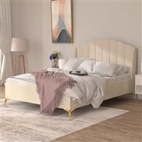 Transform your bedroom into a romantic boudoir with this wonderful ottoman bed. The softly padded frame and heavy-duty sprung slat system provides a sturdy base for your mattress. The headboards winged design evokes the soft contours of a scallop shell, an impression thats enhanced by the gorgeous plush fabric with velvety pile in a choice of natural, pink and grey colourways. The angled gold-effect metal legs offer a contemporary contrast to the classic lines of the frame. Padded plush-upholstered bed ...