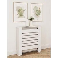 GFW Cleo Radiator Cover in White - Small - FSC Certified Turn your radiator into a smart space with this Cleo cover from GFW. A mix of contemporary style and practicality, it comes in a clean white colour and slots over your radiator, while the sleek horizontal slats allow warm air to pass through and circulate around your room. The top can be used as a smart shelf for keeping ornaments, pictures and more on display. Alternative sizes are available to add separately. Pleas remember to measure your avail...