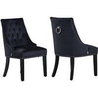 Our Windsor Knocker Back Velvet Dining Chair is a perfect blend of elegance, comfort, and durability. Upholstered in luxurious velvet with diamond tufting, silver stud detailing, and a chrome knocker handle, it adds a sophisticated touch to any space. Designed for ultimate comfort, the curved ergonomic backrest and high-density foam padding provide excellent support, making it ideal for long dinners. Built with solid wood legs, it offers superior stability and long-lasting durability. Whether used as a dining chair, accent piece, or stylish seating in a living room or study, its timeless design complements any dcor. Plus, the soft-touch velvet fabric is easy to clean, ensuring effortless maintenance. Whos ready for a stylish dinner party or cocktails in these gorgeous chairs£ We sure are! | Life Interiors Set of 2 Velvet Dining Chairs Scoop Knockerback & Button Tufted, Solid Wood Legs in Black - Manufacturers part numbers: 176.00|Life Interiors_5060734512090