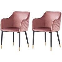 The Verona Velvet Upholstered Dining Chair combines classic elegance with modern comfort, featuring a curved ergonomic design, luxurious soft velvet finish, and beautifully detailed diamond stitching for a timeless vintage appeal. Built with a strong, durable frame and finished with elegant arms and a cushioned backrest, it provides superior support and comfort for extended sitting, making it ideal for dining rooms, offices, dressing areas, or reading nooks. The addition of adjustable feet ensures stability on uneven floors, solving common issues like wobbling and discomfort. Whether you're enhancing your workspace, upgrading your dining setup, or adding a stylish accent to your bedroom or living room, the Verona chair offers a perfect blend of luxury, functionality, and enduring style that fits effortlessly into any space. | Life Interiors Set of 2 Verona Velvet Dining Chairs with Quilted Back & Black Legs - Modern Accent Chair with Gold Foot Caps in Pink - Manufacturers part number: Life Interiors_5060734518269